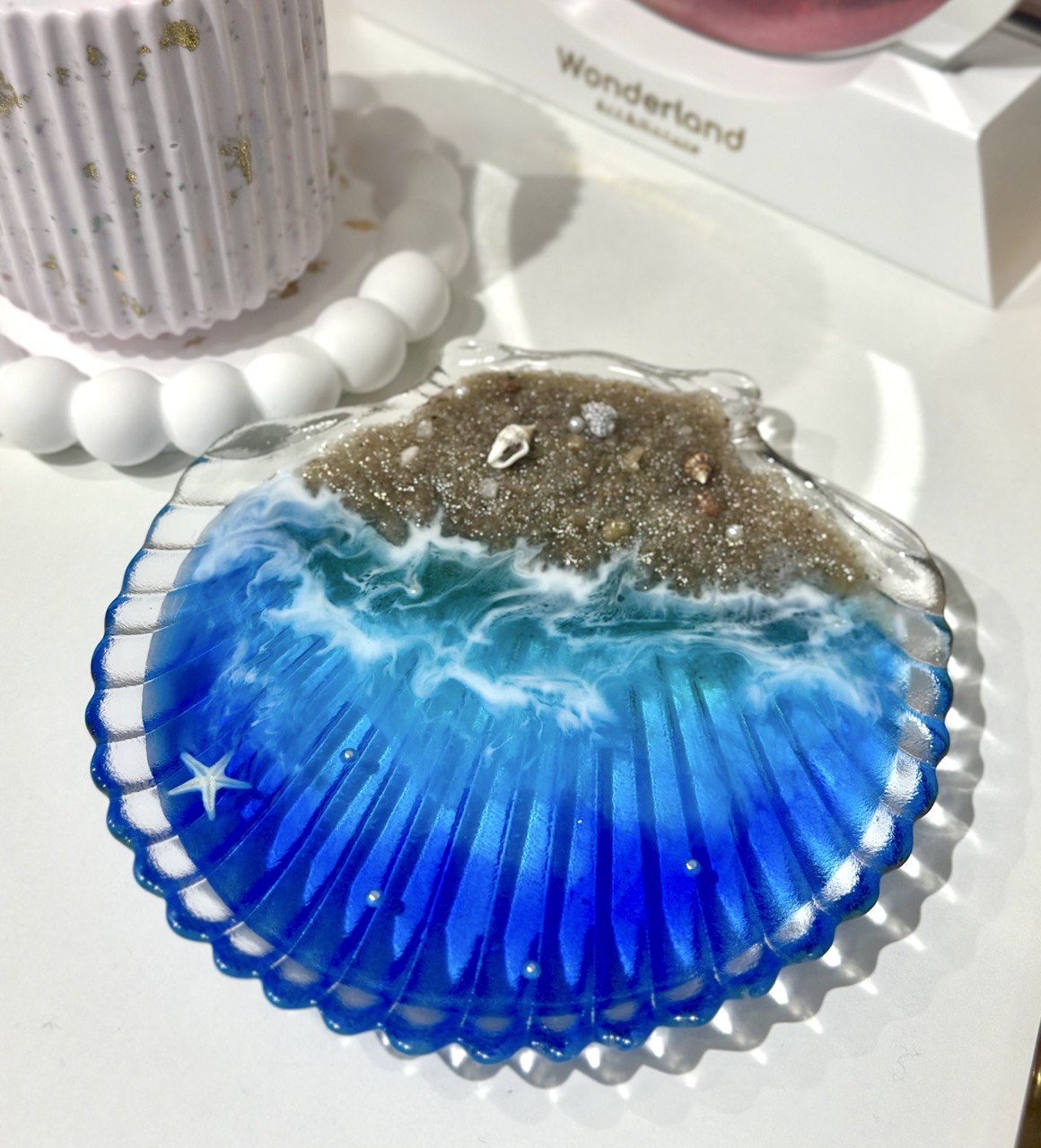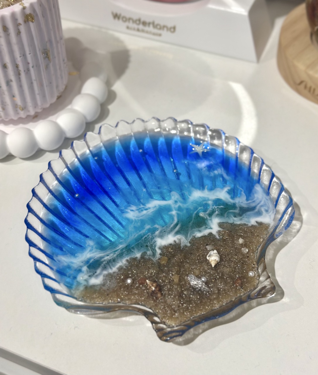 Dried resin can be reused, and the remaining materials are uniformly recycled. Of course, there are other embellishments, and shells from the beach can be inlaid~