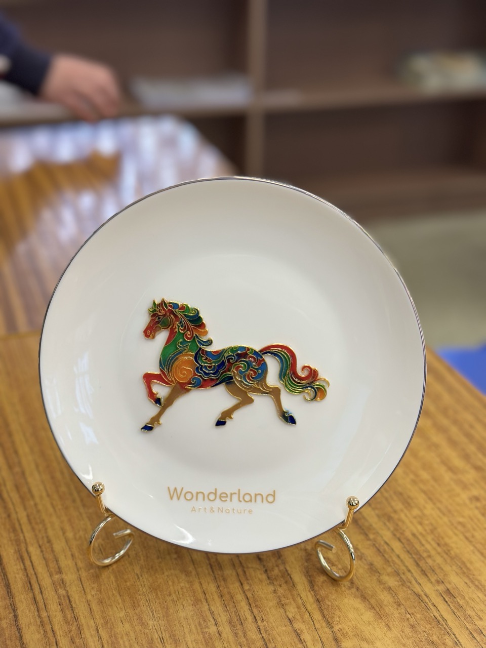 景泰藍(掐絲琺瑯畫),主要由仿金絲及琺瑯釉料製作而成,其脫胎於古老的景泰藍工藝——將宮廷御用琺瑯技法移植到畫板上的創意繪畫。