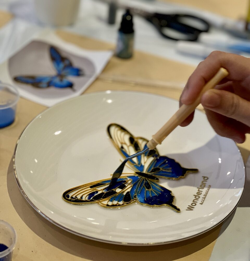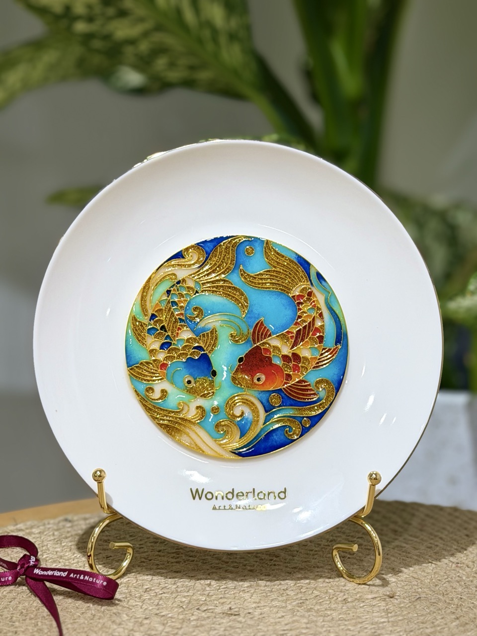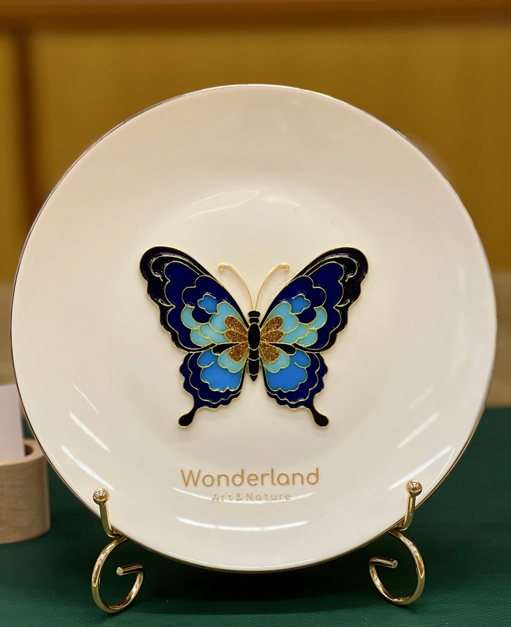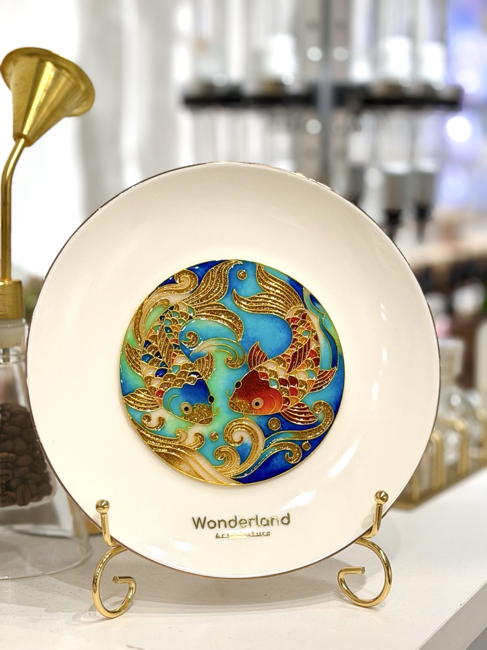 景泰藍(掐絲琺瑯畫),主要由仿金絲及琺瑯釉料製作而成,其脫胎於古老的景泰藍工藝——將宮廷御用琺瑯技法移植到畫板上的創意繪畫。