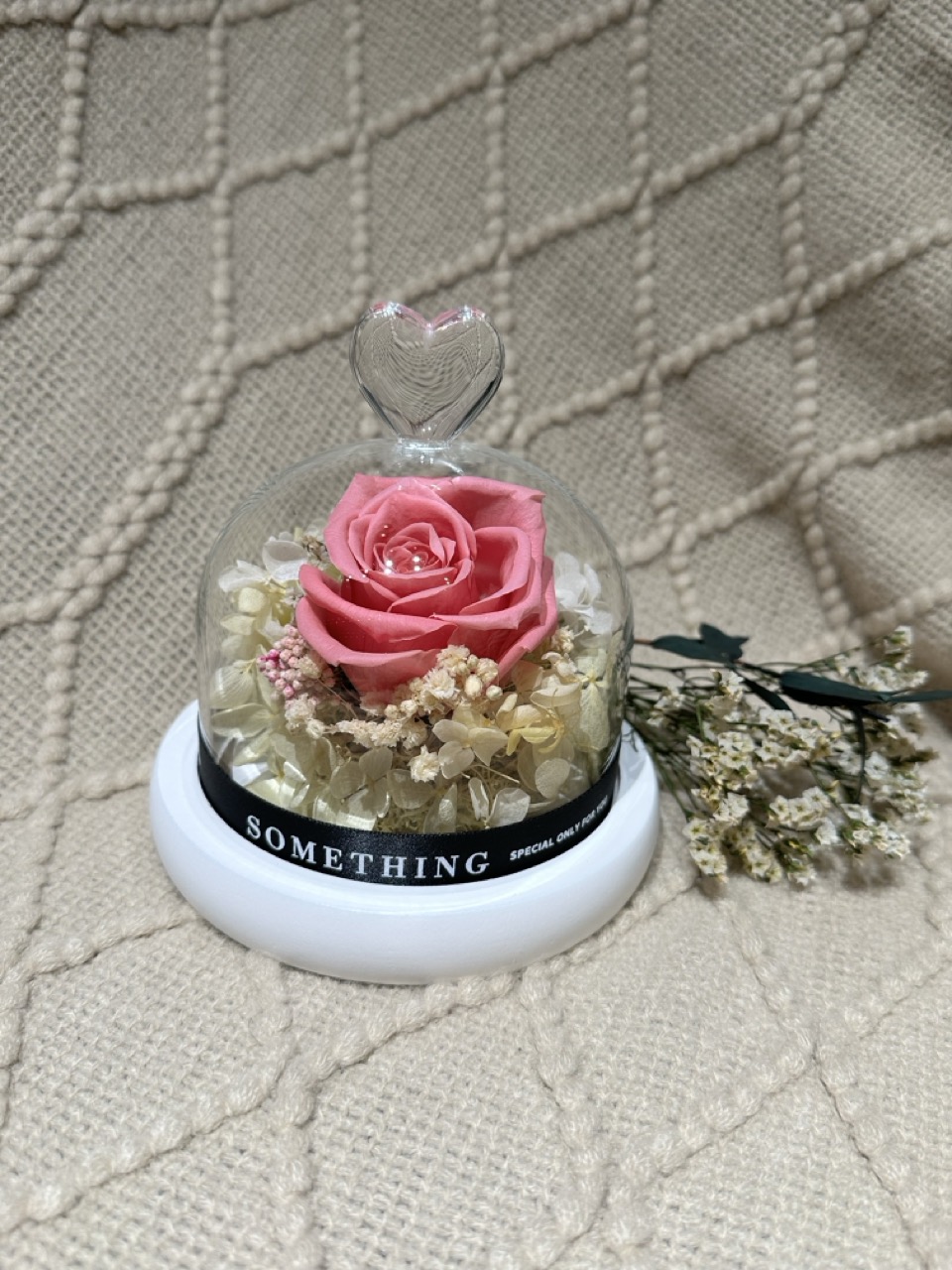 可選有燈發光玻璃罩, 夜晚欣賞更有氣氛(永生花玻璃罩10cm(H));