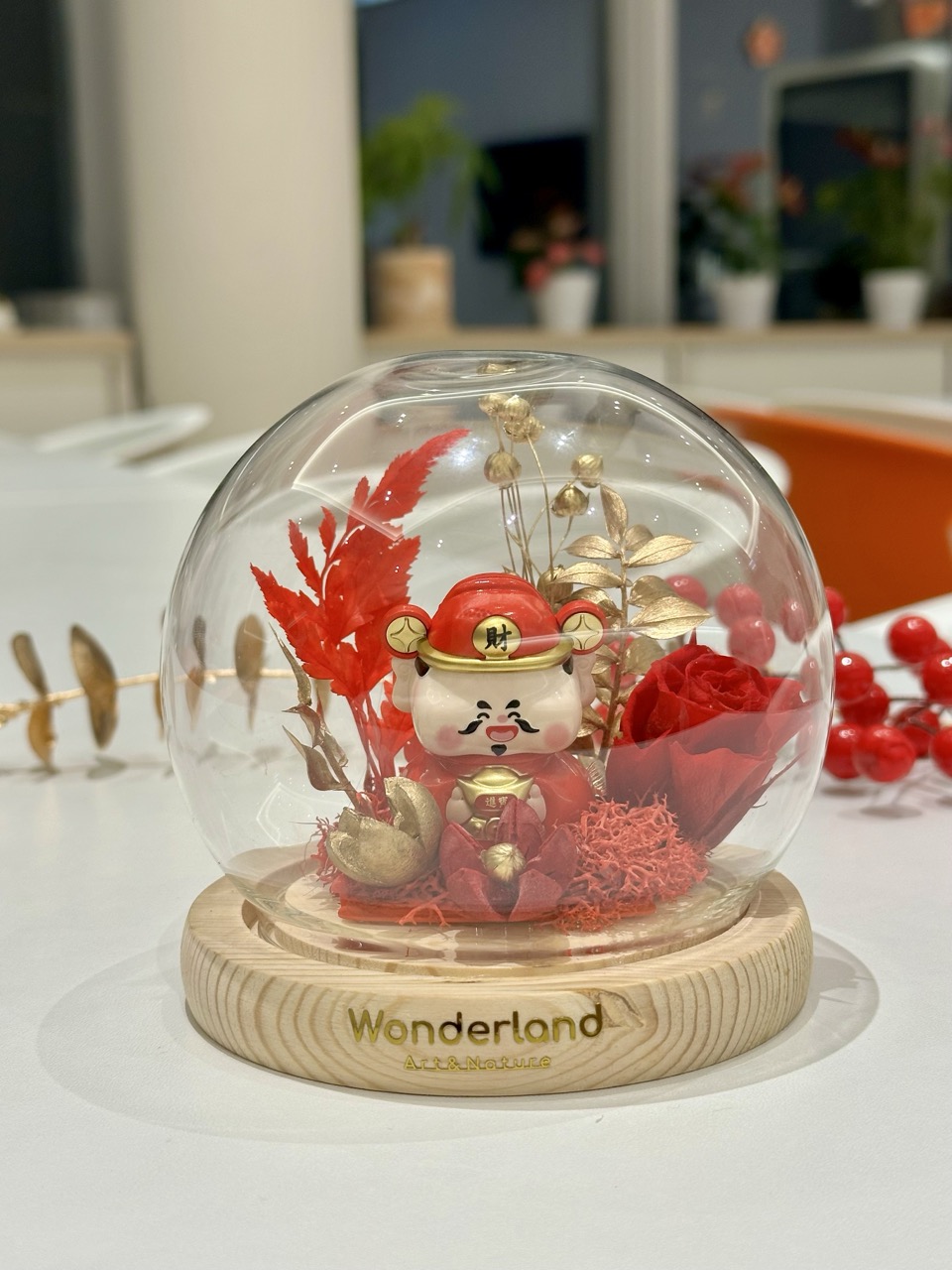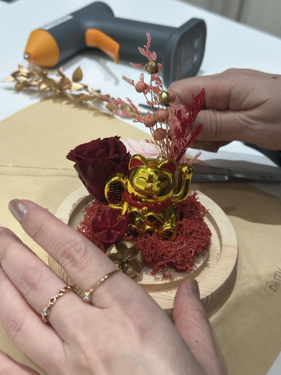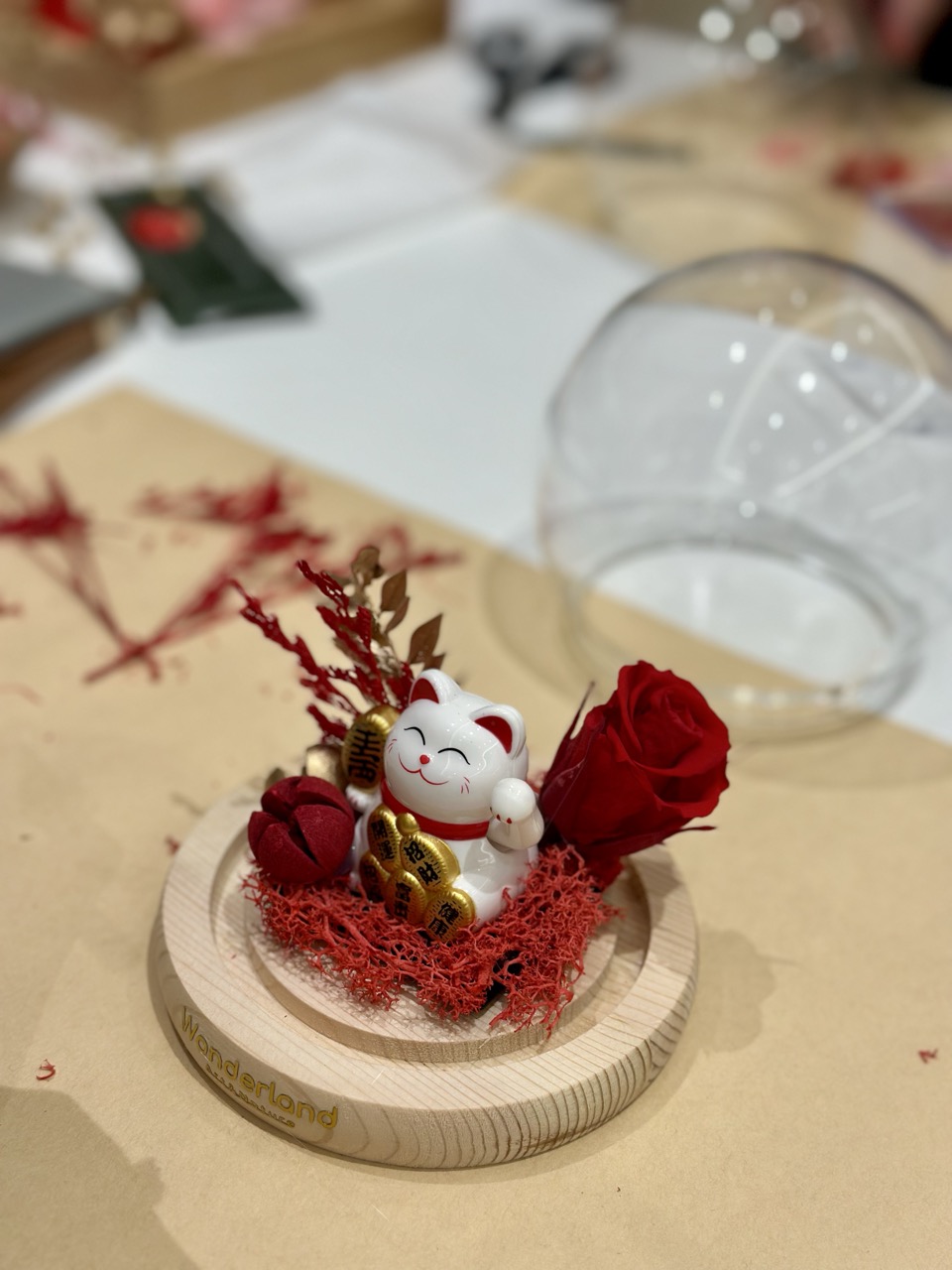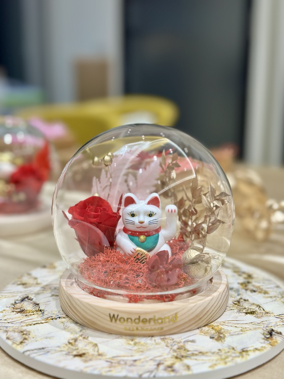 每次看著玻璃罩里的花朵,不僅有一種真實感,而且隨著光線不同角度的照射,會呈現不同的美感。