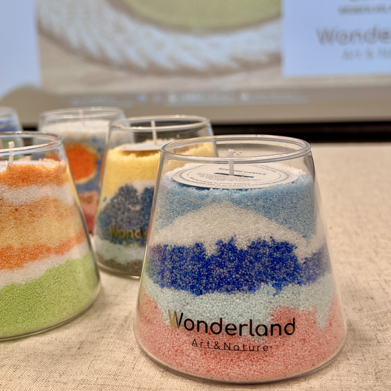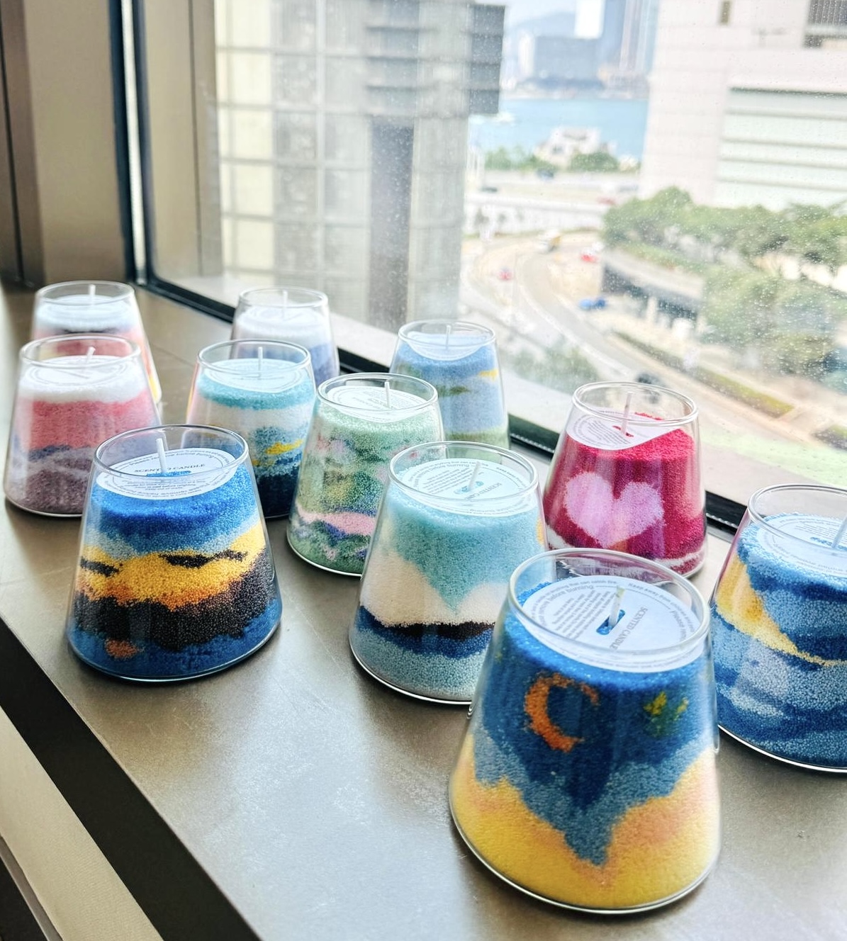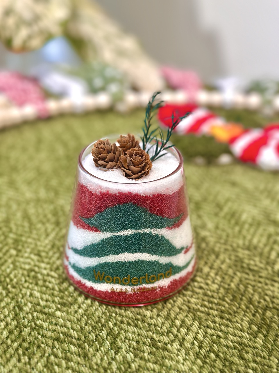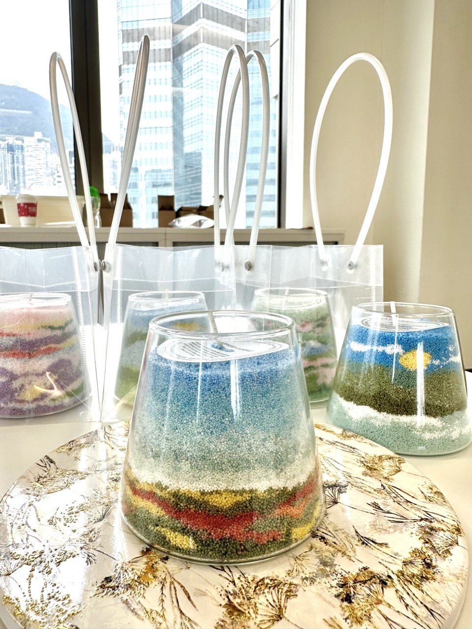 從製作容器的篩選到材料的配比,在有儀式感的創作體驗過程中,大家會互相分享精油的香味體驗,享受交流和做手工的樂趣,實在太減壓了,尤其是一層層融沙的過程特別有意思,看著自己創作的獨一無二的小作品很是開心。
