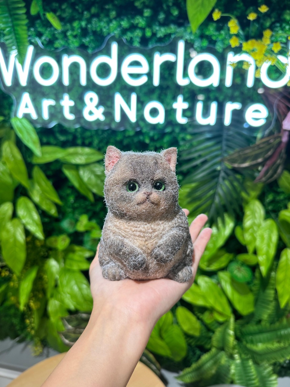 「我一開始打算做這個『假』貓咪,作為生日禮物送給喜歡和養貓的好朋友,沒想到,做完之後,我直接送給了自己。並做多一個與她貓貓的同款,她收到之後,超感動,感謝Wonderland的導師的指導,如此細節的生動,是真的很有愛。」